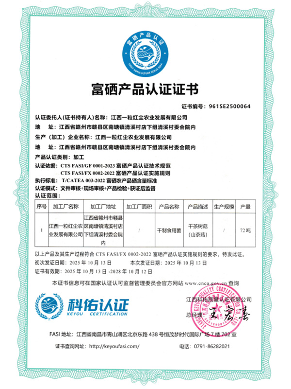 江西一粒紅塵農(nóng)業(yè)發(fā)展有限公司是一家總部位于江西省贛縣的現(xiàn)代農(nóng)業(yè)多元型企業(yè),專注于食用菌的研發(fā)種植深加工貿(mào)易研教培農(nóng)文旅等全產(chǎn)業(yè)鏈發(fā)展。公司秉承“健康綠色共享共贏”的核心價值觀,致力于引領(lǐng)鄉(xiāng)村振興之路,旨在成為......